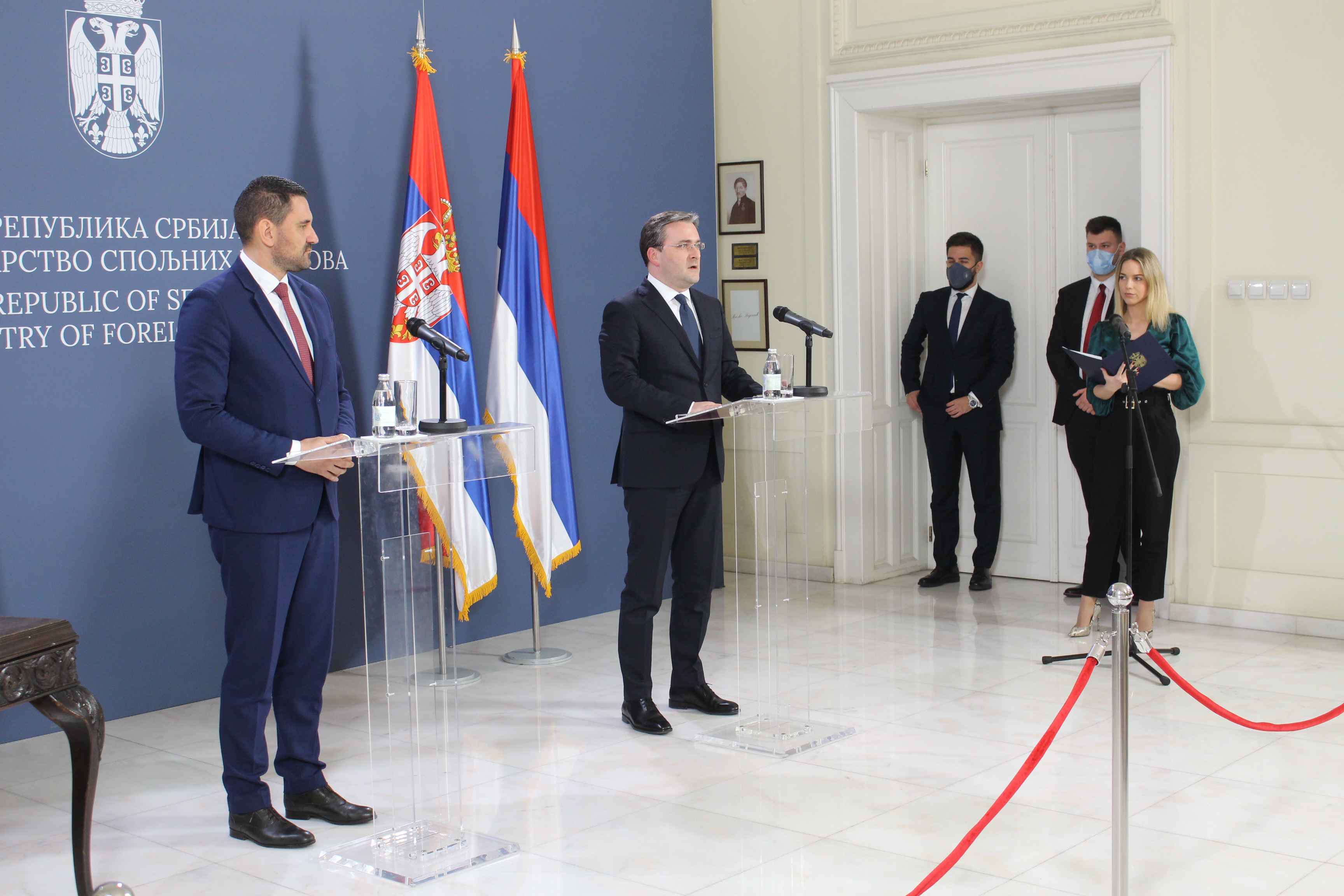 Министар спољних послова Србије Никола Селаковић састао се данас са министром за европске интеграције и међународну сарадњу Републике Српске Златаном Kлокићем и поручио да Србија поштује и подржава територијални интегритет БиХ, али да подржава и Републику Српску у њеним настојањима да се као равноправни ентитет у оквиру БиХ развија и напредује.